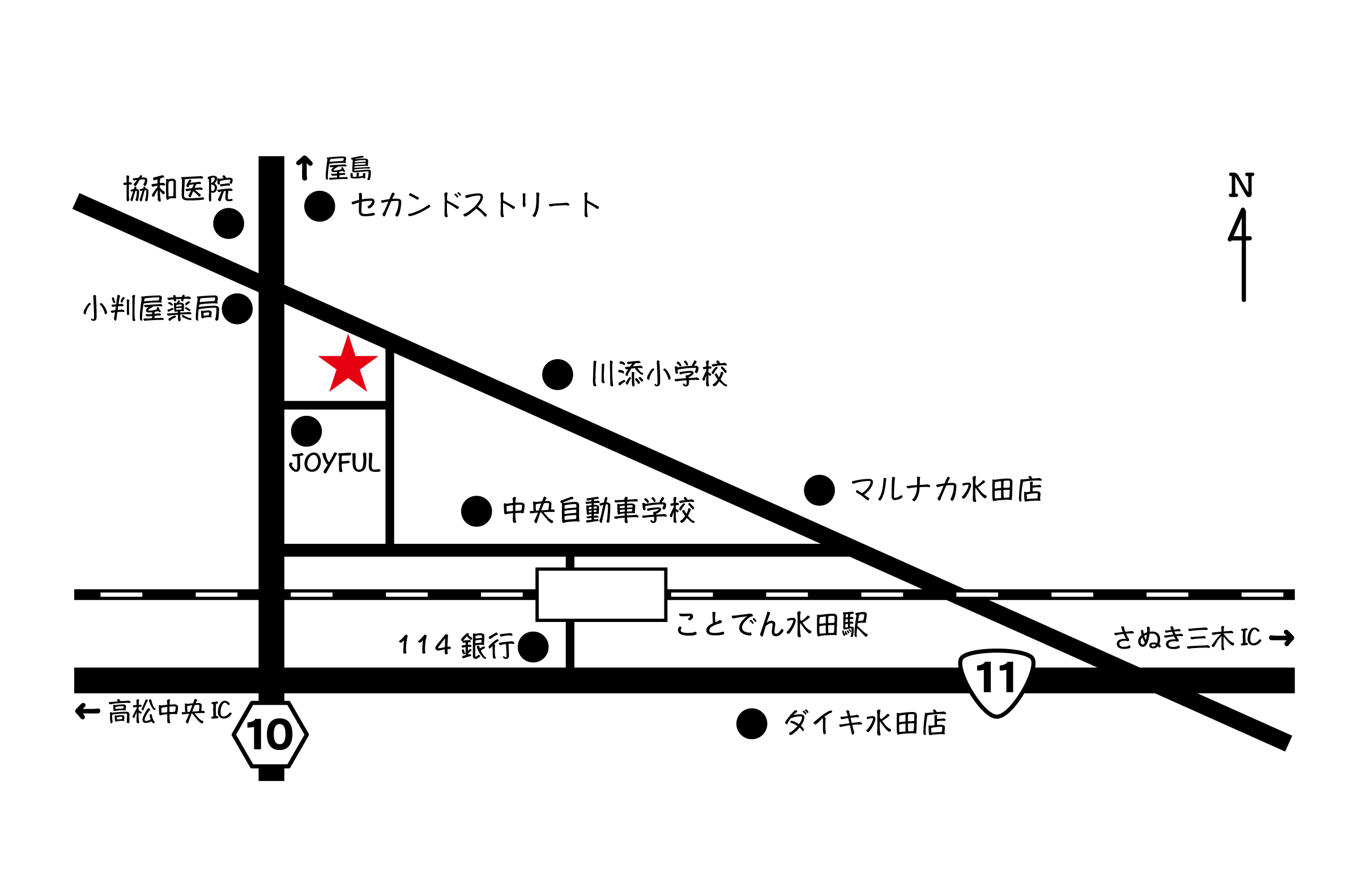 電車でお越しの方へ:琴電水田駅から徒歩5分